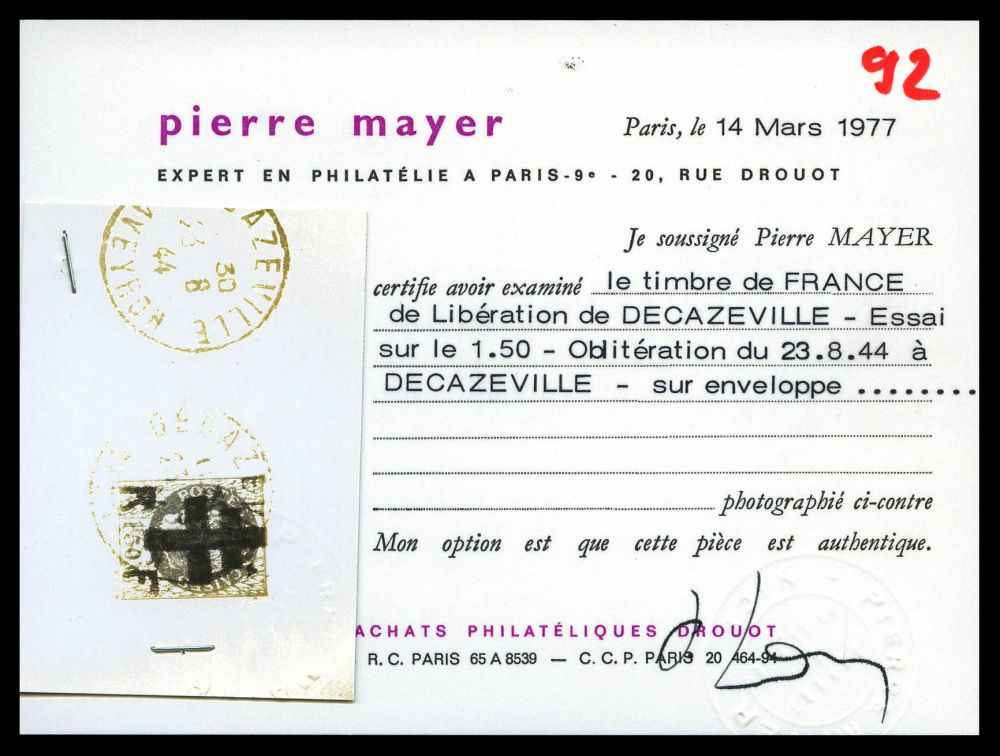 Mayer/Certificats) Qualité: Oblitéré Cote: 2350 euros (Image)