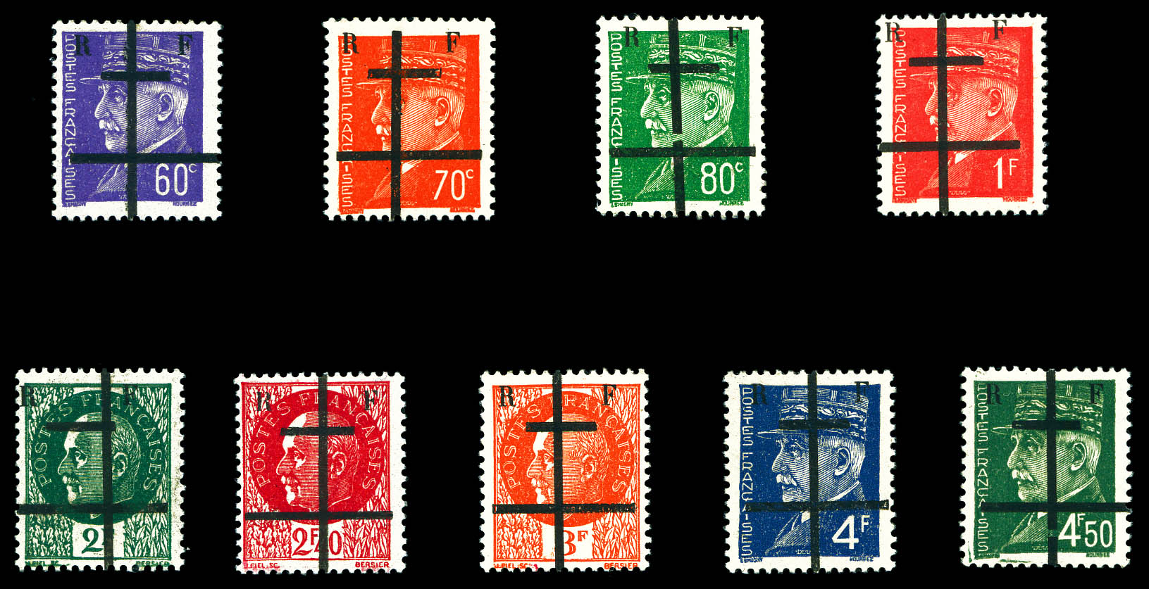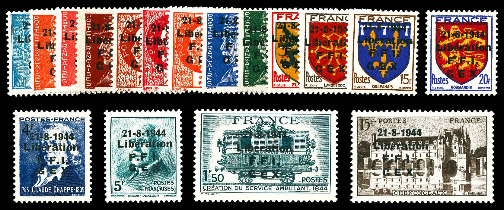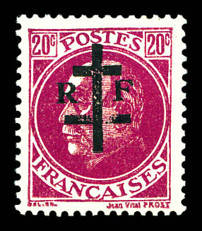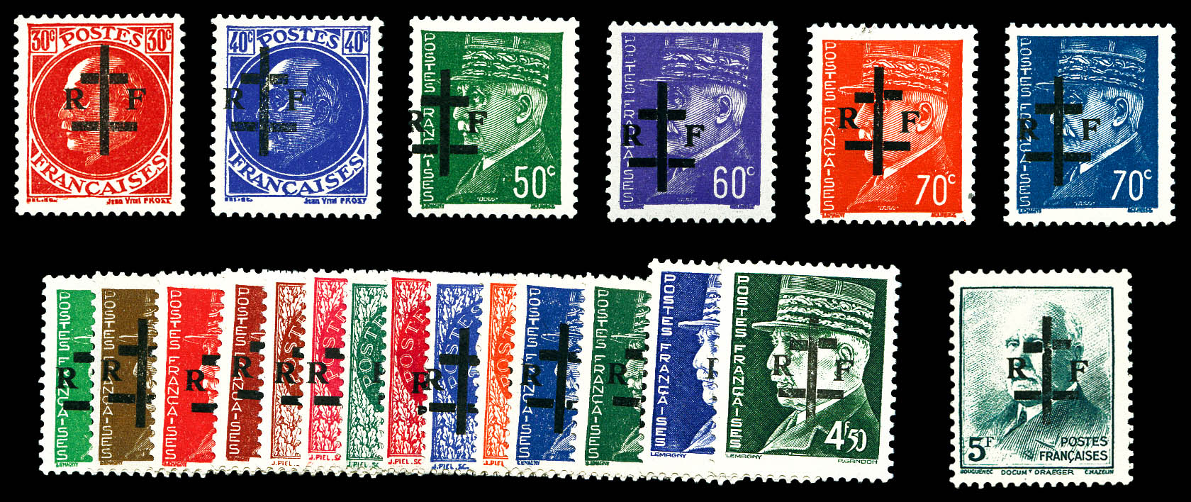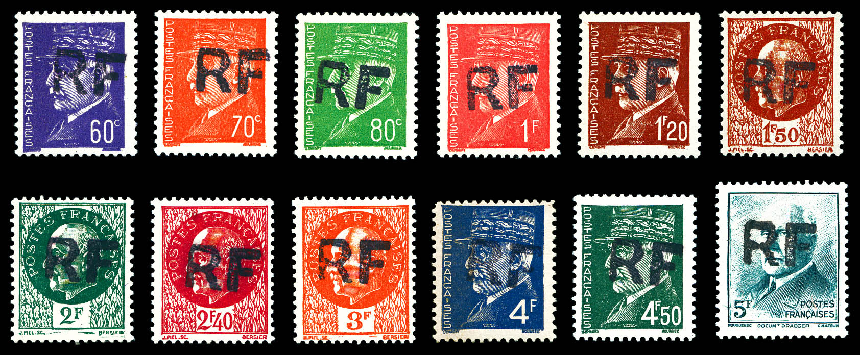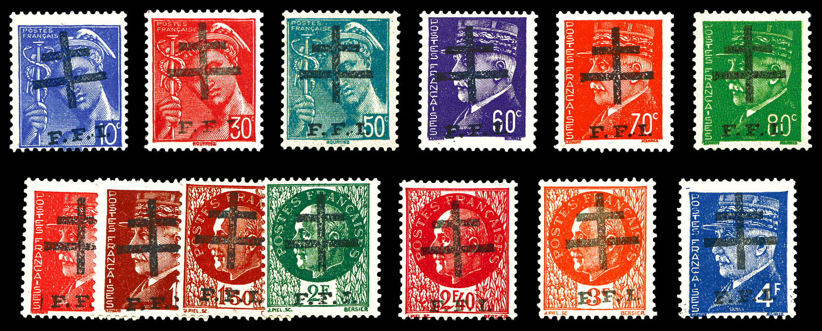 Lyon (Rhône): Types Mercure, Bersier et Hourriez surcharge (H): 'RF' penchée et épaisse, 14 valeurs **/*. (n°12 pd). SUP. R.R. (signé