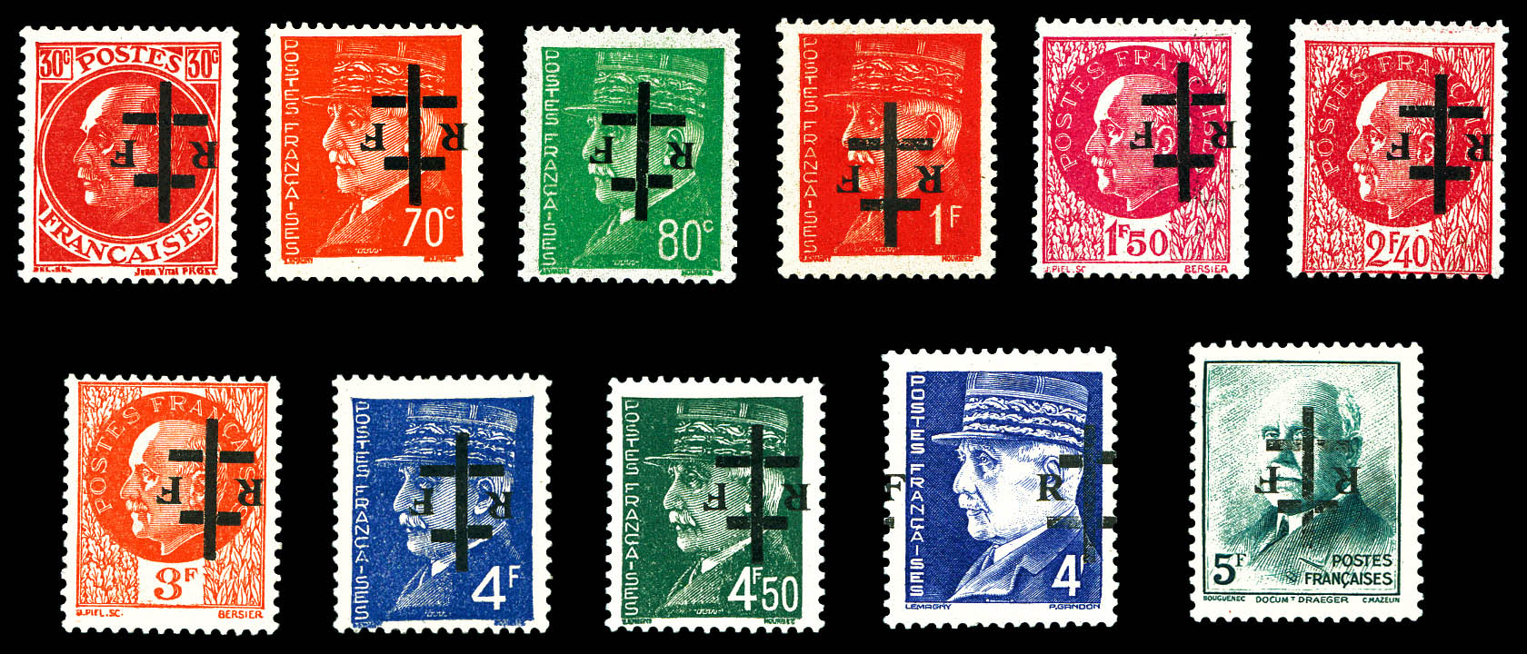 LA CHARITE SUR LOIRE: Surcharges renversées sur N°1, 5, 7, 9, 12, 14, 16, 17, 18, 19 et 21 , les 11 exemplaires TB (certificat)