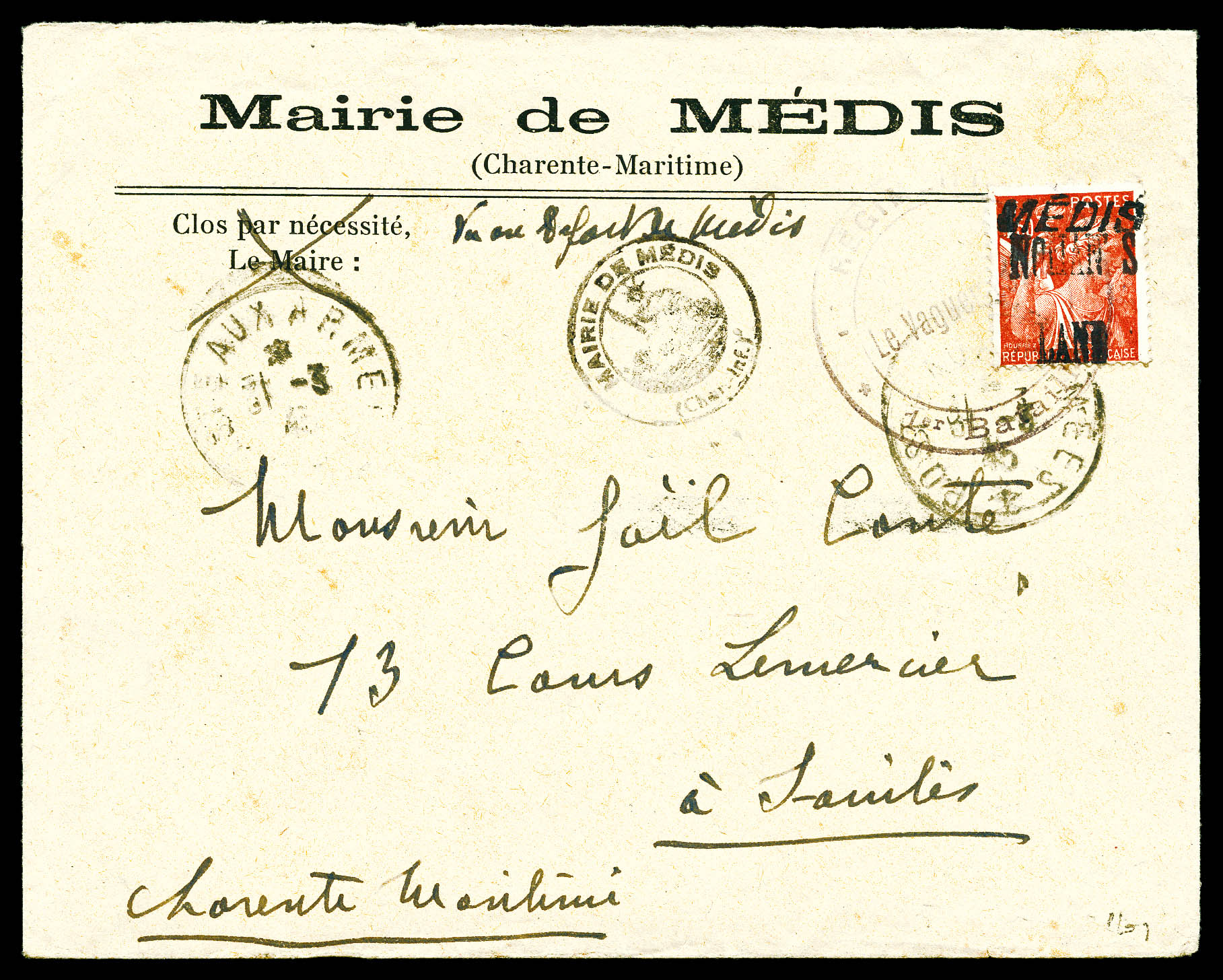 N°4, MEDIS: 1f 50 brun sur lettre à destination de Saintes. TTB (signé Mayer/certificat) Qualité: Oblitéré Cote: 600 euros (Image)