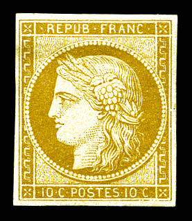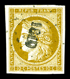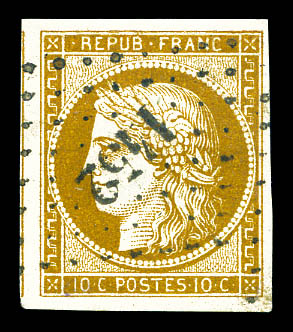 bistre-verdâtre obl grille. TB (signé Brun/Calves) Qualité: Oblitéré Cote: 550 euros (Image)