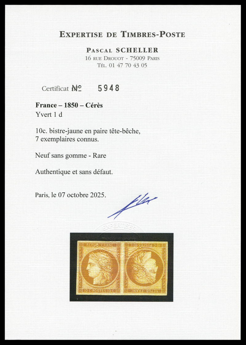 paire tête-bêche, fraîcheur postale, 7 pièces connues, magnifique,. R.R.R. (signé Calves/certificats) Qualité: (*) Cote: 105000 euros (Image) (image2)