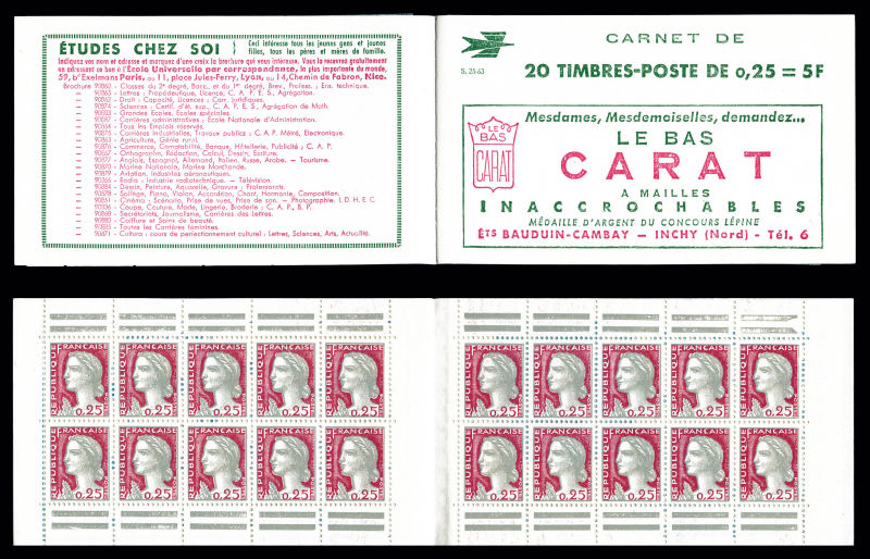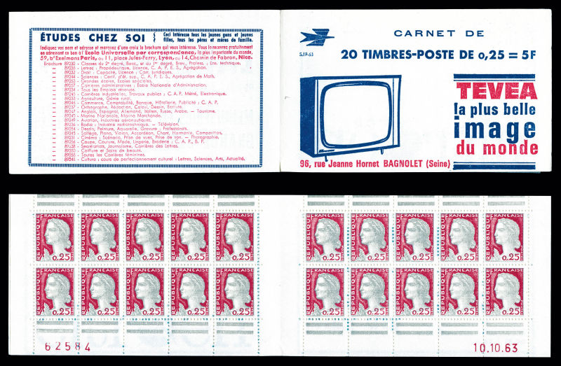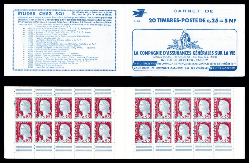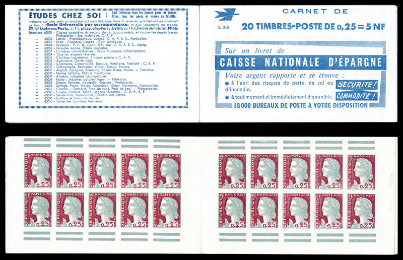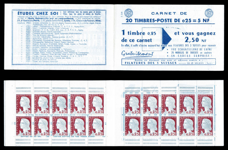 Coq, 0,30Fr rouge carnet de 20 timbres: 6 exemplaires SANS LA COULEUR VERTE et VALEUR FACIALE EFFACEE, SUPERBE (certificat) Qualité: ** Cote: 2850 euros (Image)