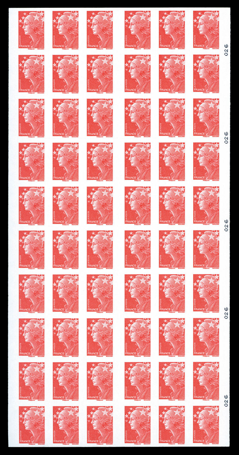 Beaujard TVP Rouge: Variété bande de 5 carnets non decoupés. SUPERBE. R. (certificat) Qualité: ** (Image)