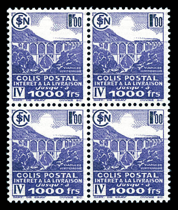 émis, 1F violet en bloc de quatre. TTB (certificat) Qualité: ** Cote: 480 euros (Image)
