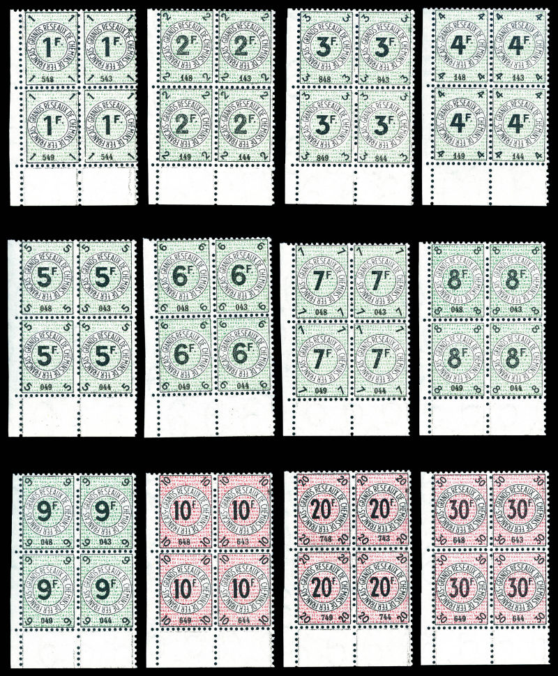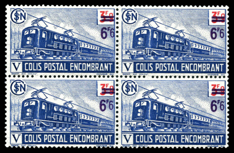 Locomotive, surcharge doublée (faciale) sur 2 exemplaires tenant à paire surcharge double dont une au verso du bord de feuille. SUPERBE. R.R.R. (certificat) Qualité: **