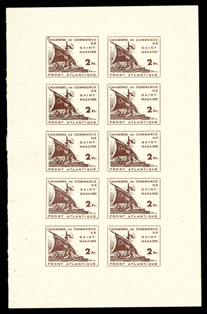 2162 imageN°9, 2f brun en feuille de 10 exemplaires non dentelés. SUPERBE. R.R.R (certificat) Qualité: (*) Cote: 10000 euros (Image)