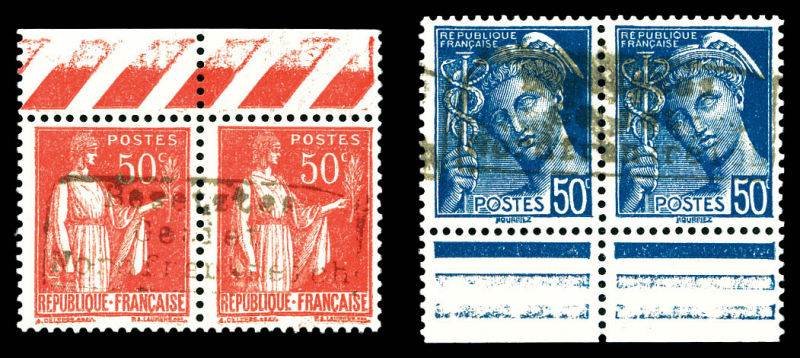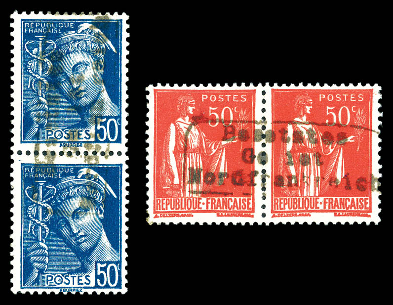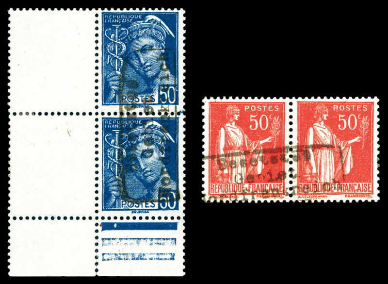 2167 imageN°12/14, 50c Paix et 50c Mercure en paires surchargée 'Dunkerque', bdf. TB (signés) Qualité: ** Cote: 560 euros (Image)
