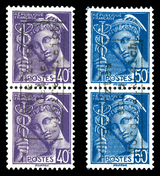 2168 imageN°33 et 36, 40c et 50c Mercure (413) en paires surchargées Coudekerque. TTB (certificat) Qualité: * Cote: 900 euros (Image)