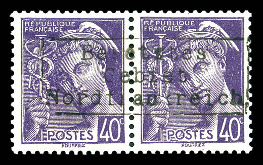2163 imageN°10, Mercure 40c violet en paire surchargée 'Dunquerque'. SUP. R. (signé Brun/certificat) Qualité: ** Cote: 8500 euros (Image)