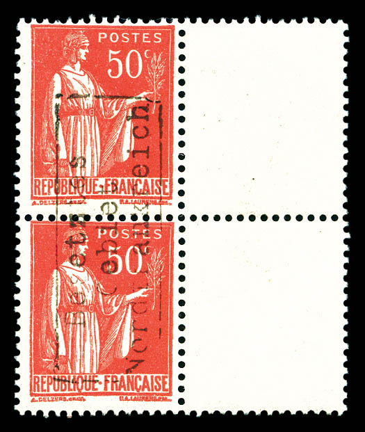 2170 imageN°35, Paix, 50c rose-rouge en paire horizontale surchargée Coudekerque bdf, TB (signé Brun/certificat) Qualité: ** Cote: 1350 euros (Image)