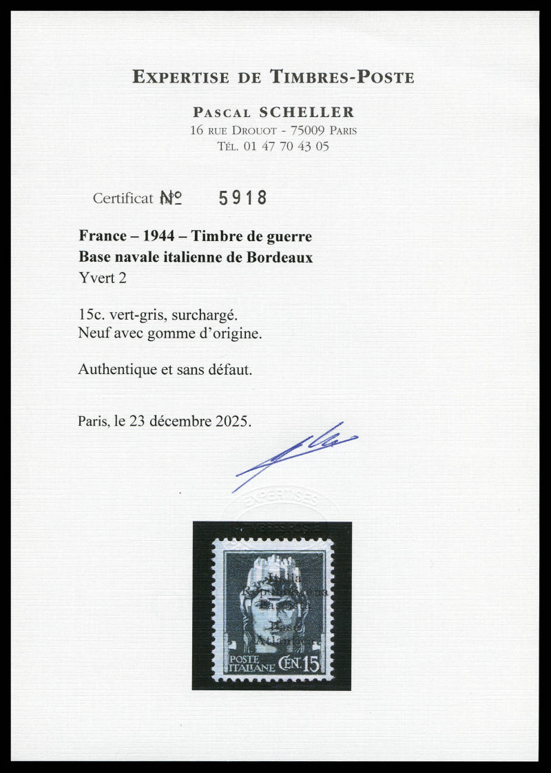 2179 imageN°9D, (N° Maury), Timbre de Propagande 25c vert avec vignette 'Milice'. SUPERBE. R.R.R (signé Diena/certificat) Qualité: (*) Cote: 1500 euros (Image)