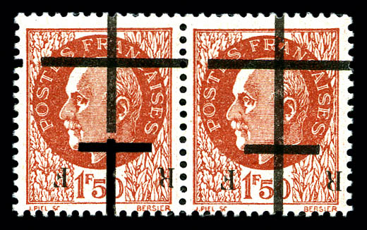 1f 50, surcharge renversée en paire. TB Qualité: ** Cote: 300 euros (Image)