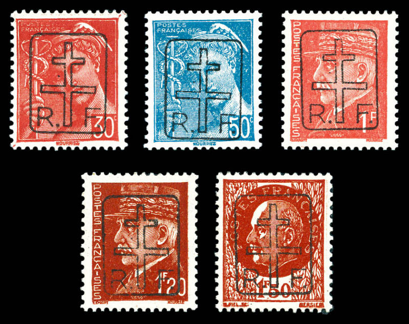 GOUVERNEMENT PROVISOIRE: Non émis, n°57, 62, 64, 66 et 70, les 5 valeurs TTB (certificat) Qualité: ** Cote: 1200 euros (Image)