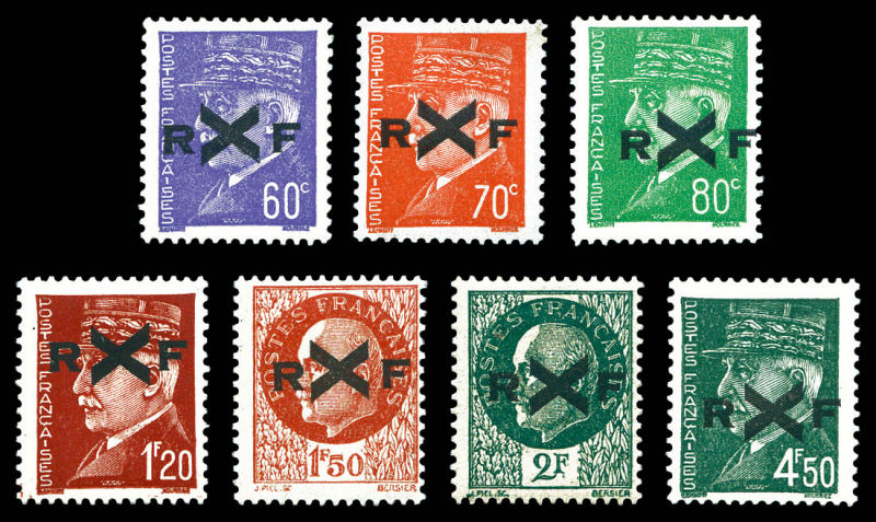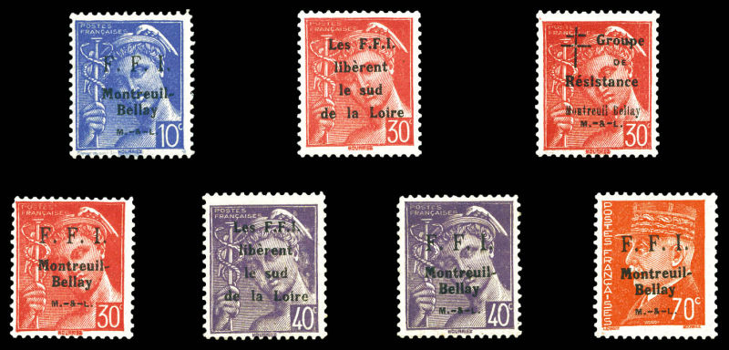 BELLAY: n°29, 30x 3, 31 x2 et 35 Texte patriotique uniquement sur les timbres, les 7 exemplaires differents. TB Qualité: ** Cote: 774 euros (Image)