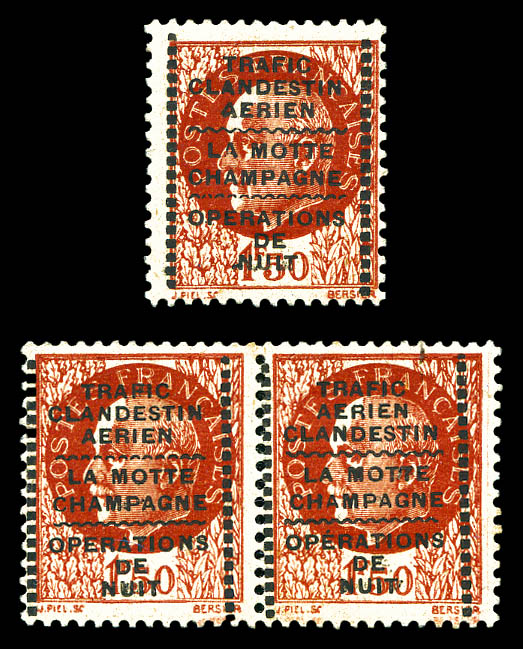 MONTREUIL BELLAY: surcharge intervertie 'Trafic aérien clandestin' tenant à normal + exemplaire normal. TB Qualité: * Cote: 510 euros (Image)