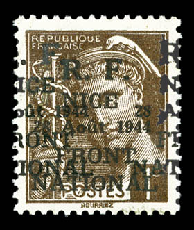 (Alpes Maritimes): NON EMIS, 1c brun variété DOUBLE SURCHARGE dont une à cheval, SUP (signé Mayer/certificat) Qualité: ** (Image)