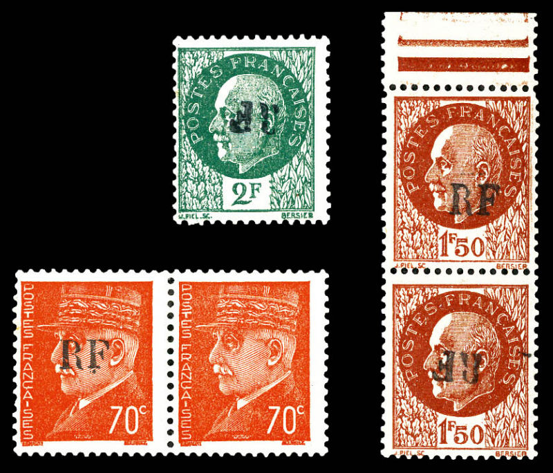 2343 imageTOURS-GARE: variétés, 2 surcharges renversées (dont 1ex tenant à normal) et ex tenant à non surchargé. TB (signés Mayer) Qualité: ** Cote: 660 euros (Image)