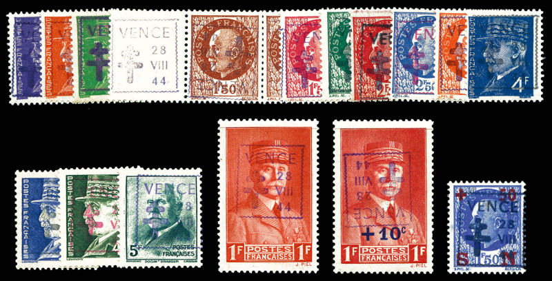 2346 imageVENCE: n°5, 6, 8, 12 (2ex), 13, 14, 15, 15A, 17, 18, 19, 25, 27 et 28. TTB. R. (signé s Mayer/certificat) Qualité: ** Cote: 1062 euros (Image)