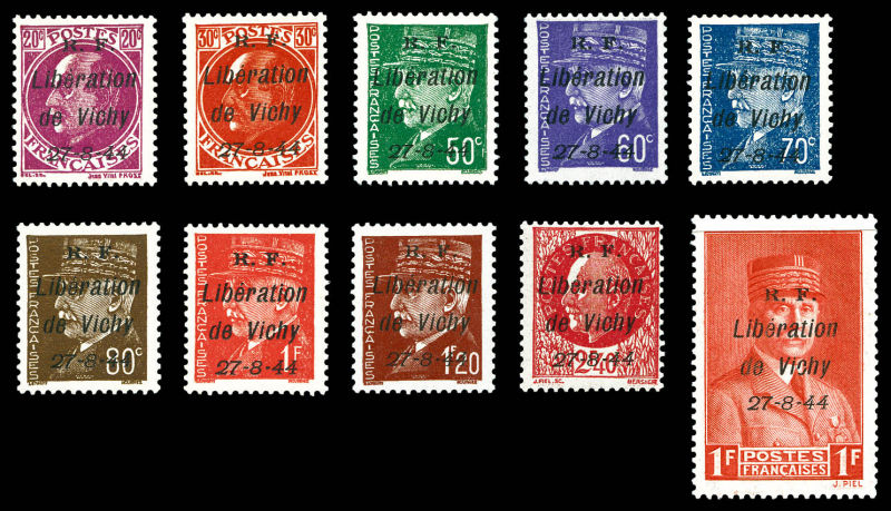 2349 imageVICHY: N°1, 2, 4, 5, 7, 9, 10 et 11, 14 et 19 les 10 valeurs TTB (certificat) Qualité: ** Cote: 1752 euros (Image)
