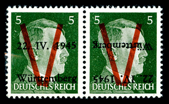 2352 imageN°2a, WURTEMBERG (Allemagne): 5 pf vert, surcharge renversée tenant à normale, R.R.R, SUP (signé Calves/certificat) Qualité: ** (Image)