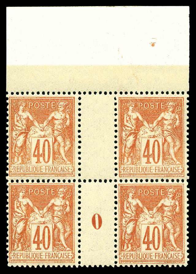 2355 imageN°94, 40c rouge-orange en bloc de quatre haut de feuille millésime '0'. SUP (certificat) Qualité: ** (Image)