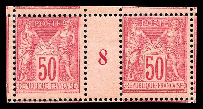 2357 imageN°98, 50c rose type II en paire millésime '8' avec neuf voisins, pont*. SUP. R. (certificat) Qualité: ** (Image)