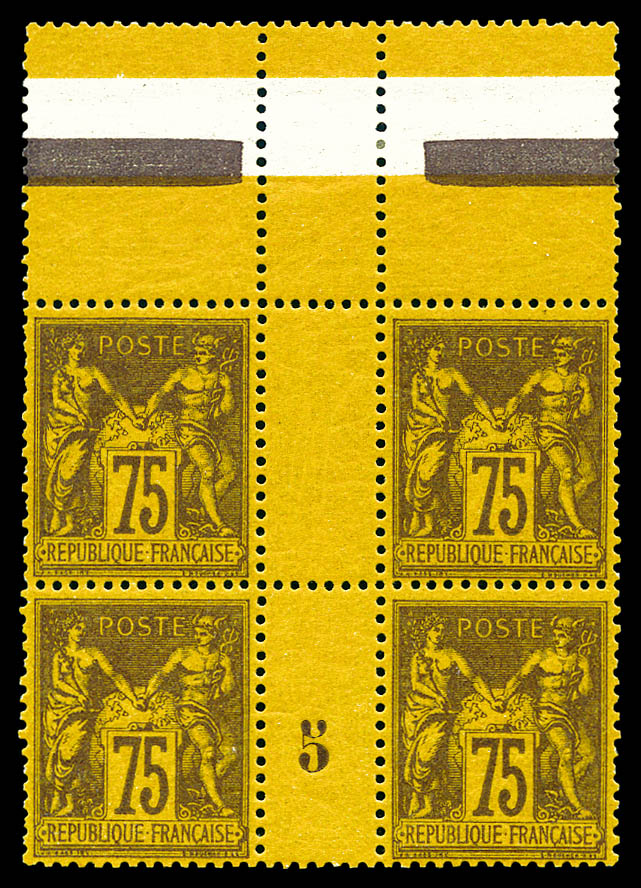 2358 imageN°99, 75c violet sur orange, bloc de quatre millésime '5', haut de feuille. fraîcheur postale. SUP. R (certificat) Qualité: ** (Image) (image2) (All Images)