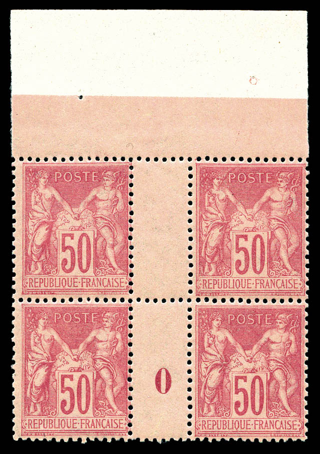 2360 imageN°104, 50c rose en bloc de quatre haut de feuille millésime '0', fraîcheur postale, SUPERBE (certificat) Qualité: ** (Image)