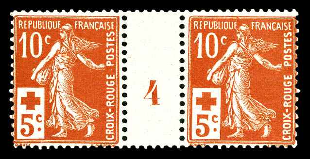vermillon surchargé en paire millésime '3', TB (certificat) Qualité: ** Cote: 900 euros (Image)