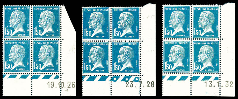 Pasteur: Les 3 coins datés avec dates différentes (1926, 1928 et 1932). TB Qualité: ** Cote: 320 euros (Image)