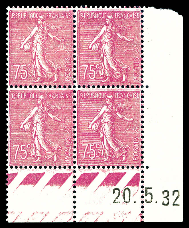 lilas-rose Type II en bloc de quatre coin de feuille daté du 20/5/32, SUP. R. (certificat) Qualité: ** Cote: 6300 euros (Image)