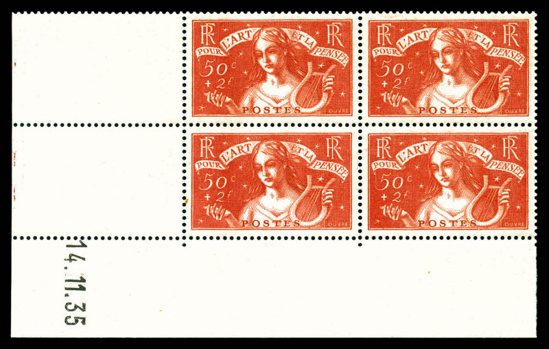 Pensée en bloc de quatre coin de feuille daté du 14/11/1935, TB (certificat) Qualité: ** Cote: 680 euros (Image)