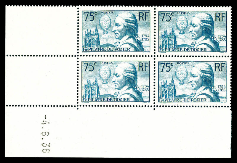 Pilâtre de Rozier en bloc de quatre coin de feuille daté du 4/6/1936, TB Qualité: ** Cote: 225 euros (Image)