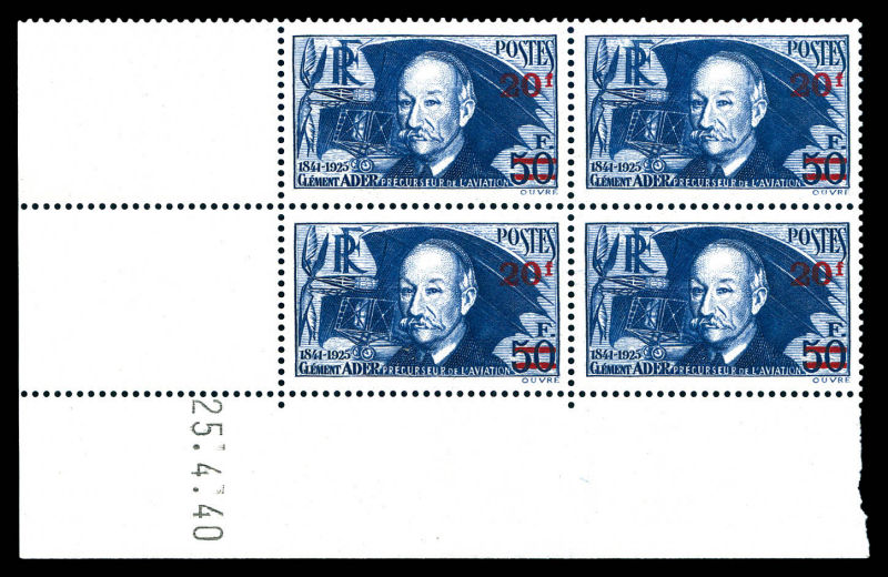 surchargé en bloc de quatre cdf daté du 25.4.40. TB Qualité: ** Cote: 425 euros (Image)
