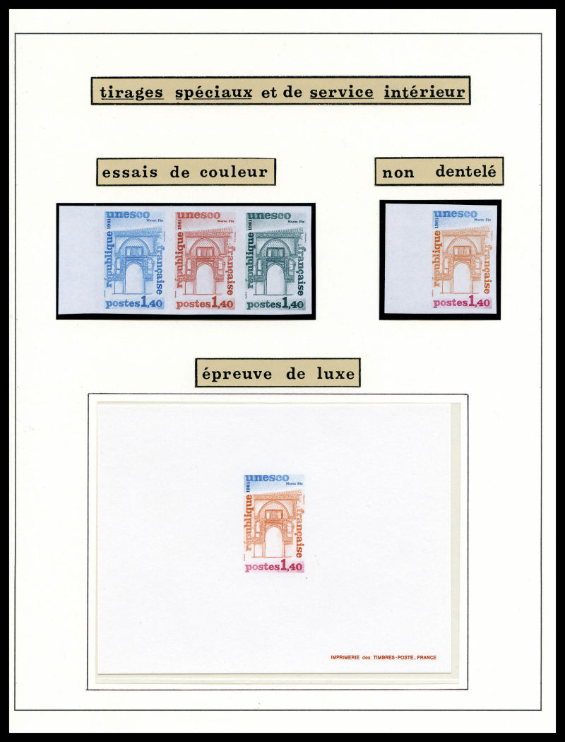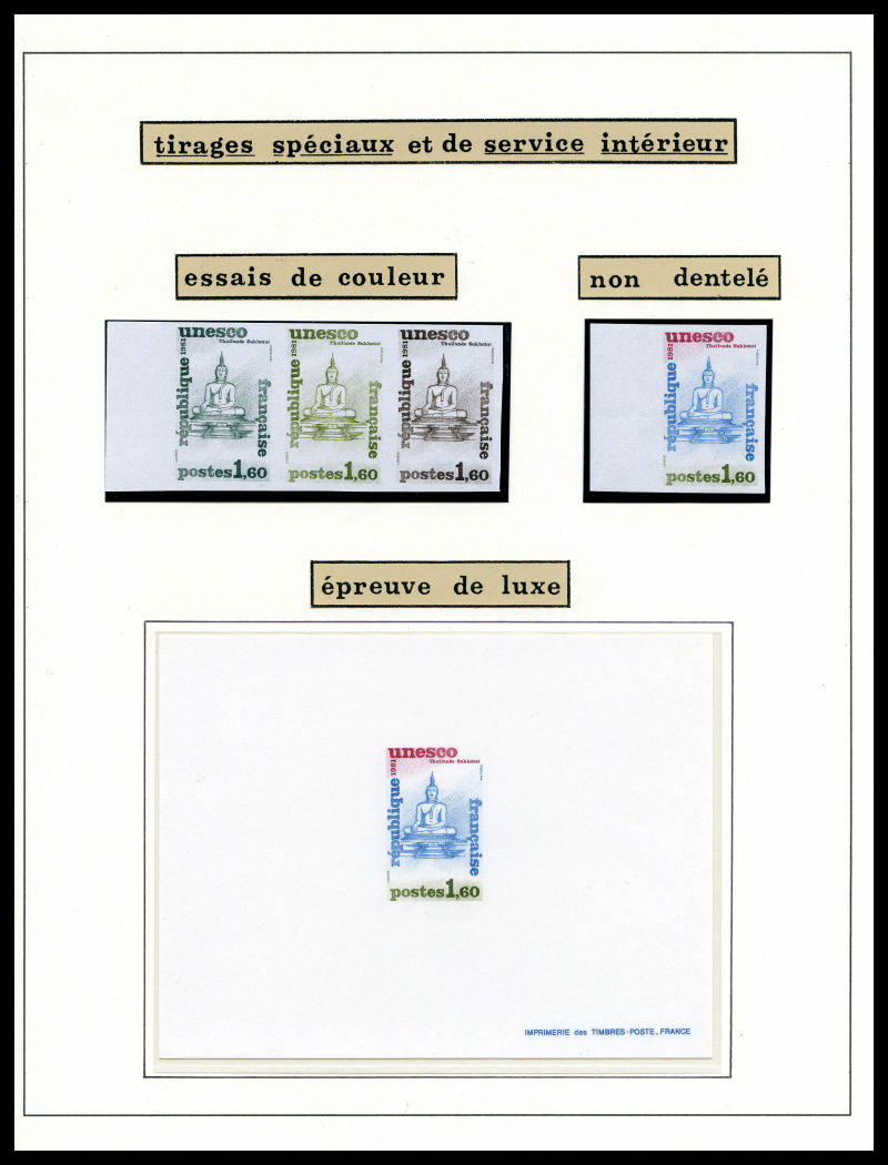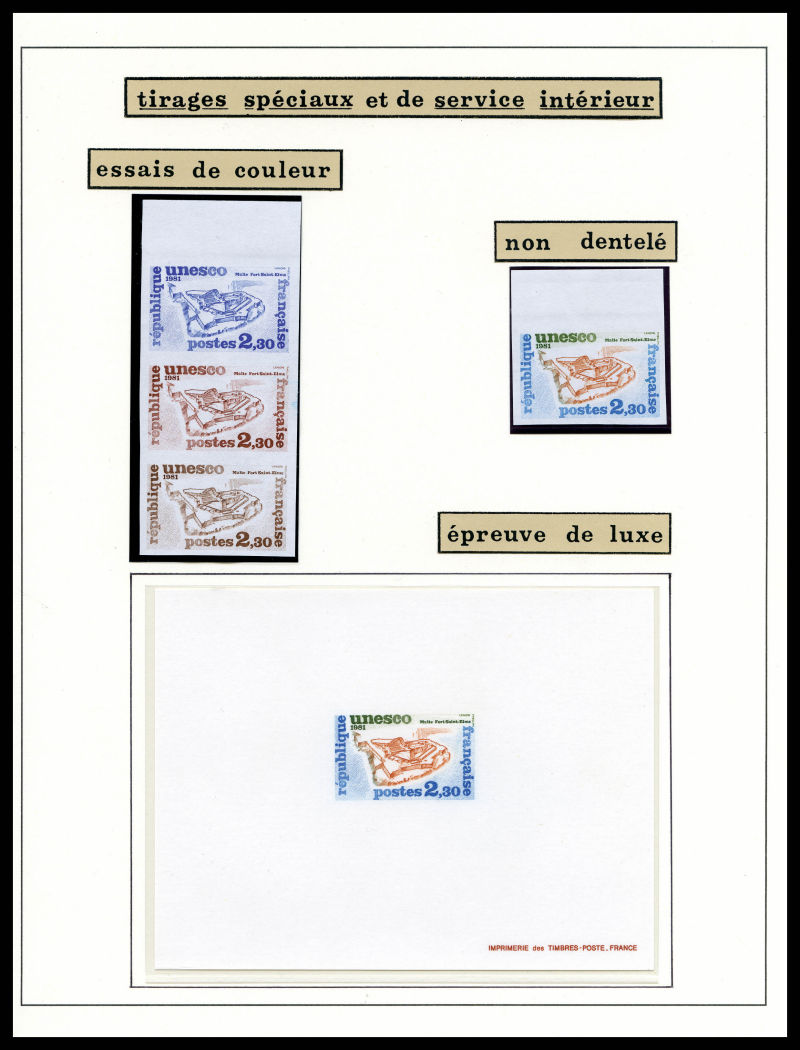 2463 imageN°68/70, Série UNESCO de 1981: Epreuve de Luxe + 4 essais de couleurs non dentelés dont1 multicolore. TB Qualité: ** (Image) (image2) (image3) (All Images)