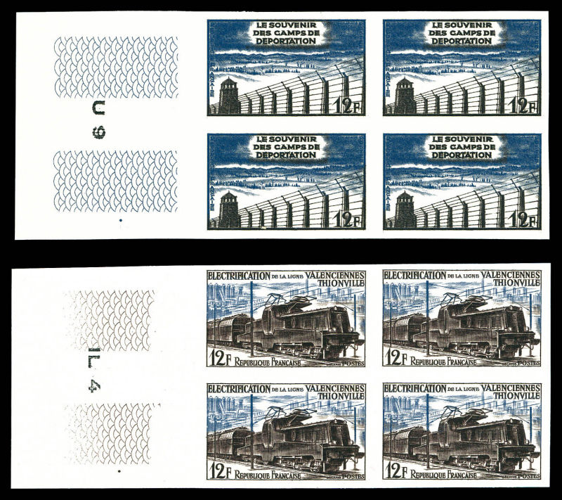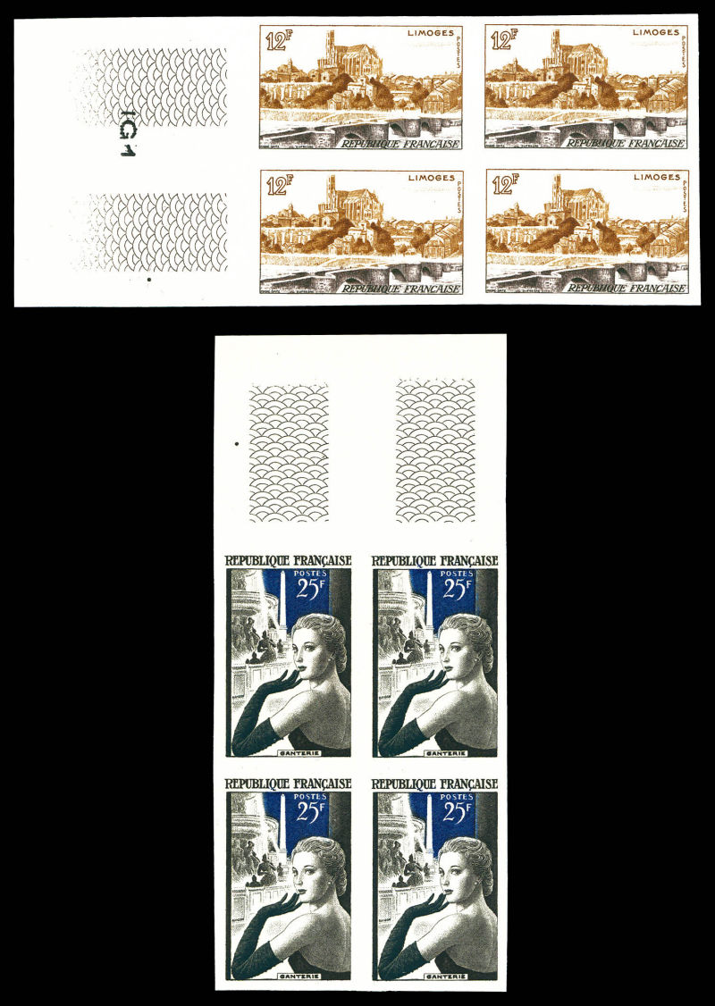 12f Limoge et 25f Ganterie: les 2 ex en bloc de quatre bdf. TB Qualité: ** Cote: 200 euros (Image)