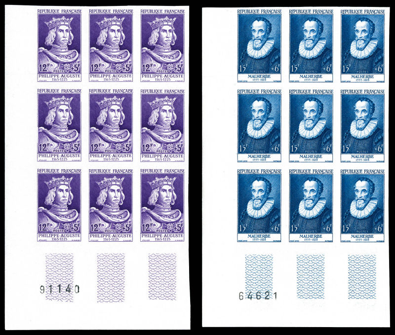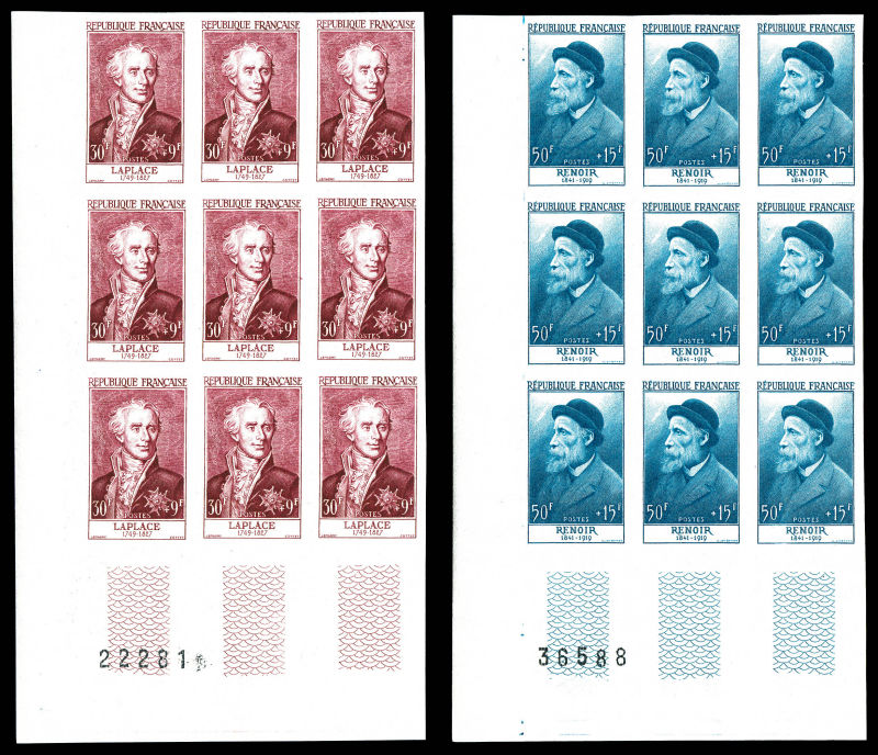 Série Célébrités de 1955 en blocs de 9 coin de feuille. TTB (certificat) Qualité: ** Cote: 2250 euros (Image) (image2)