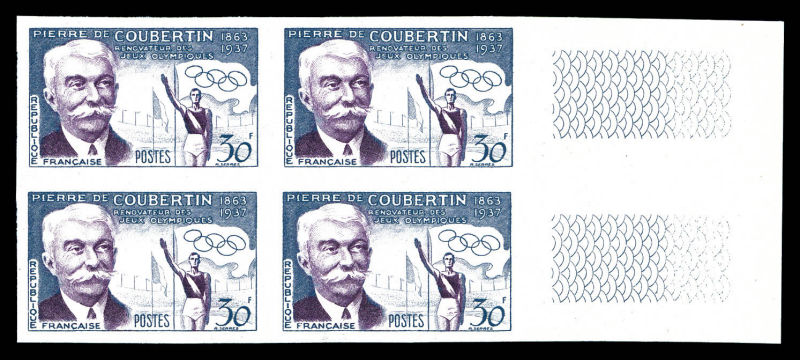 Pierre de Coubertin en bloc de 4 bdf. TTB Qualité: ** Cote: 800 euros (Image)