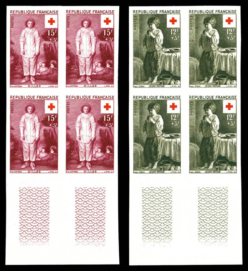 Paire croix rouge de 1956 en blocs de 4 cdf. TB Qualité: ** Cote: 640 euros (Image)
