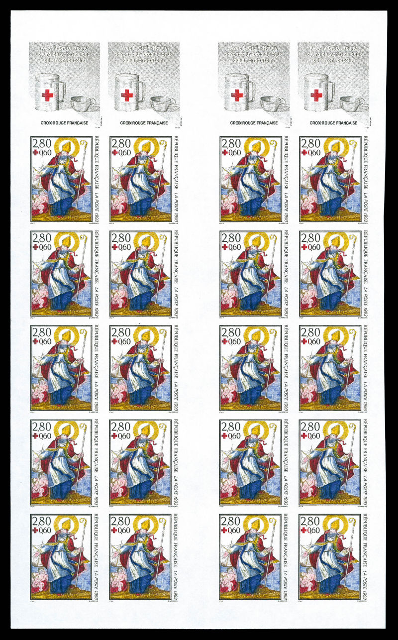 2562 imageN°2853b, Croix rouge de 1993 NON DENTELE panneau de 2 bandes, SUP Qualité: ** Cote: 800 euros (Image)