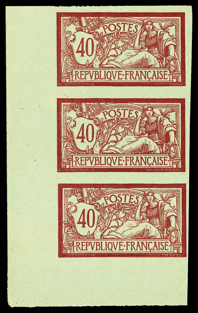 2566 imageN°119, Merson 40c: 6 essais de couleurs différentes sans teinte de fond en bande verticale de 3, R.R. SUPERBE (certificat) Qualité: (*) (Image) (image2) (All Images)