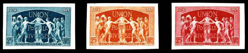 2568 imageN°852, 25F U.P.U, 3 exemplaires de couleurs différentes. SUP (certificat) Qualité: ** (Image)