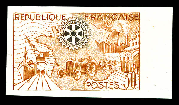 2571 imageN°1009, Non émis: Rotary 1955, essai de couleur non dentelé en brun. SUP. R. (certificat) Qualité: ** (Image) (image2) (All Images)