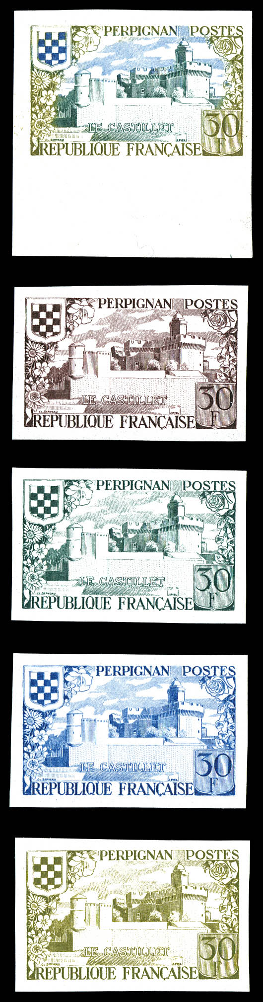 2573 imageN°1222A, Non émis, 30F Perpignan 5 exemplaires avec couleurs différentes. SUPERBE. R.R. (certificat) Qualité: ** Cote: 4500 euros (Image)