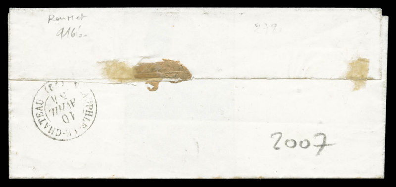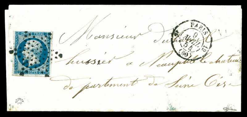 obl étoile + Càd de Paris le 9 avril 1854 sur lettre pour Neauphle le Chateau. TB (signé Brun/certificat) Qualité: Oblitéré Cote: 500 euros (Image) (image2)