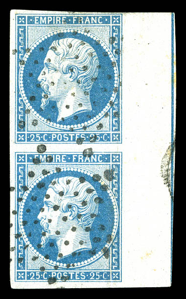 en paire verticale, grand bord de feuille avec filet d'encadrement, infime froissure sinon TB. R.R. SUP (signé Calves/certificat) Qualité: Oblitéré Cote: 5600 euros