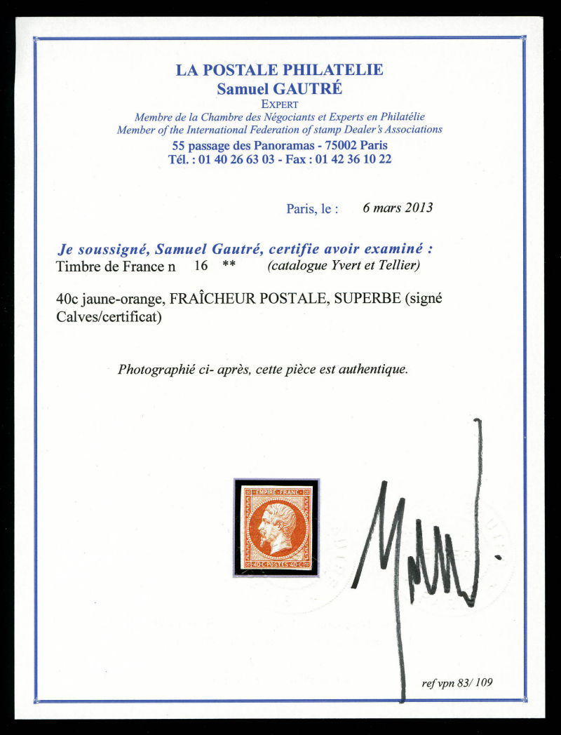 orange, FRAÎCHEUR POSTALE, SUPERBE (Signé Calves/certificat) Qualité: ** (Image) (image2)
