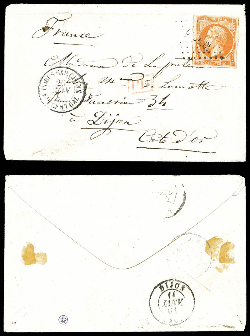 oblitéré losange 'CECC C1' + càd 'CORPS EXP.CHINE Bau CENTRAL' sur petite lettre à destination de Dijon, arrivée le 11 jan 61. SUP. R. (certificat) Qualité: Oblitéré