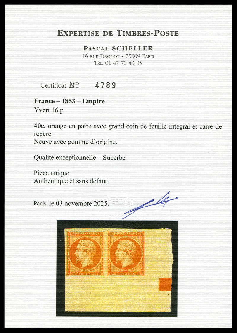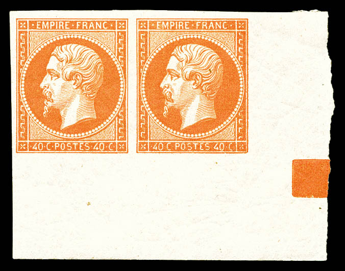 orange en paire grand coin de feuille intégral avec carré de repère. PIECE UNIQUE. SUPERBE (signé Calves/Margues/Marchand/Certificats) Qualité: * (Image) (image2)